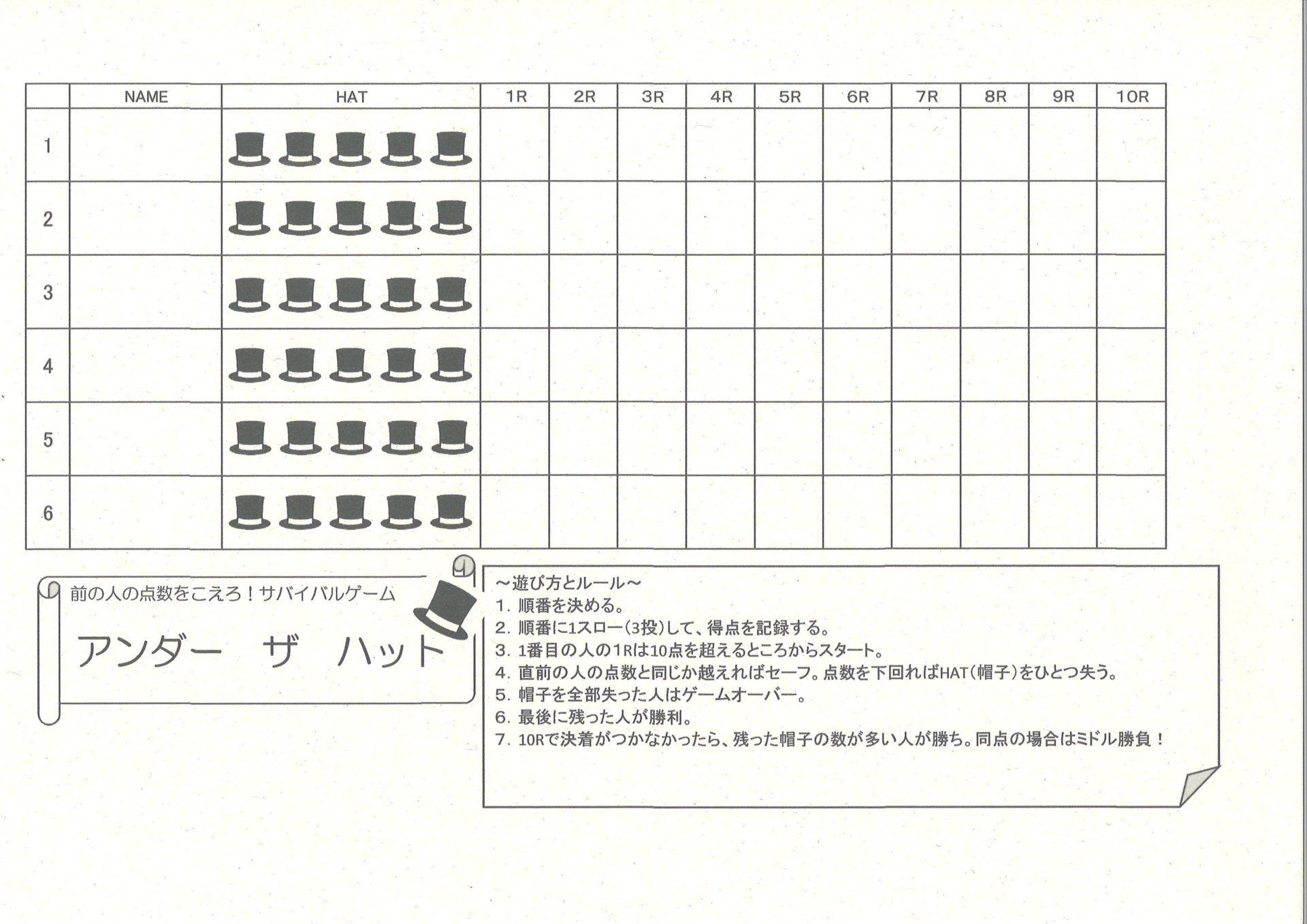 アンダーザハットは、ダーツライブ2に搭載されているパーティーゲームです。
